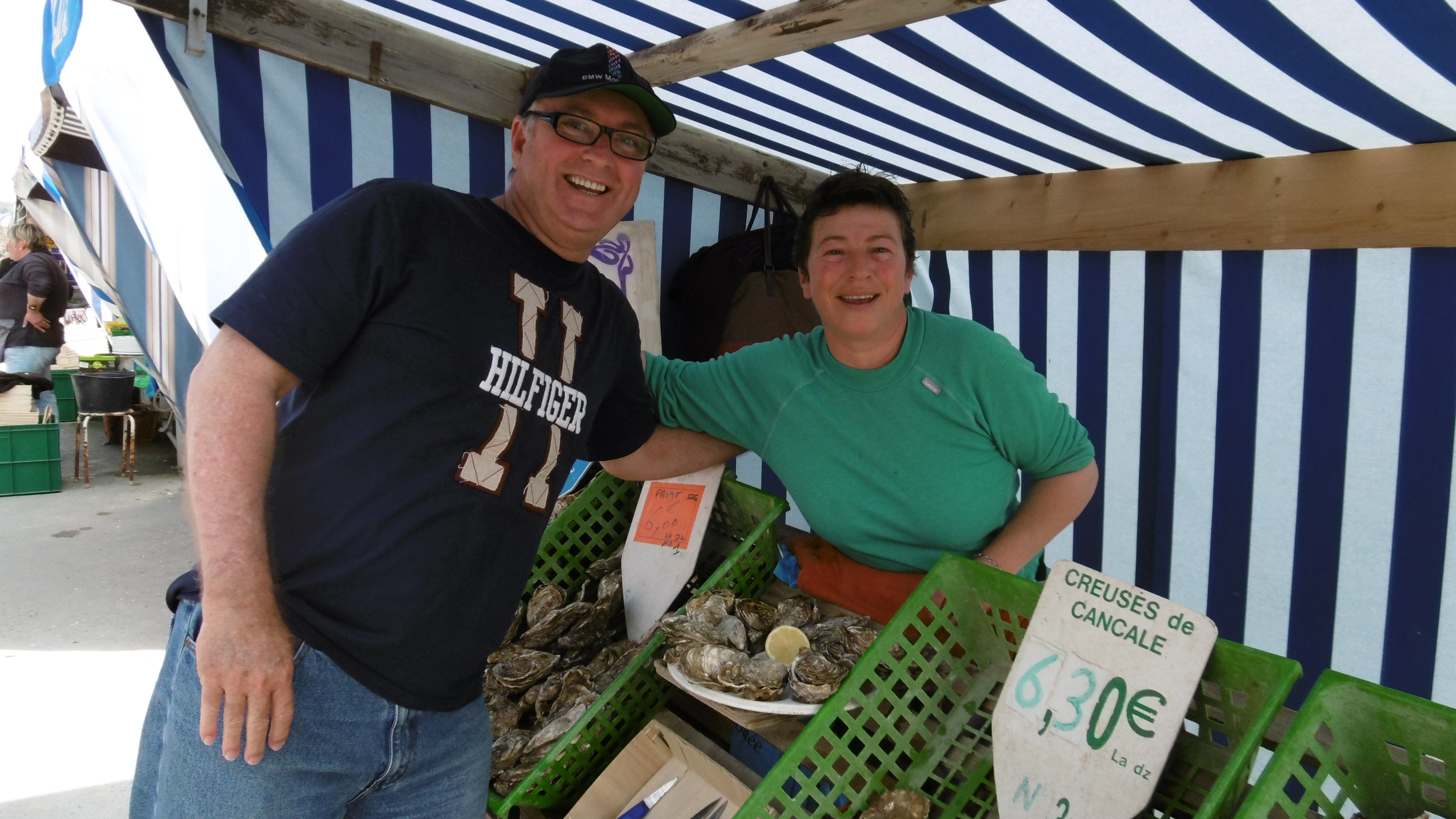 We met Sylvain, one of the vendors, and I explained to her that we were visiting Cancale because we had seen a television program in Australia, with Manu a french chef, buying oysters at their market.